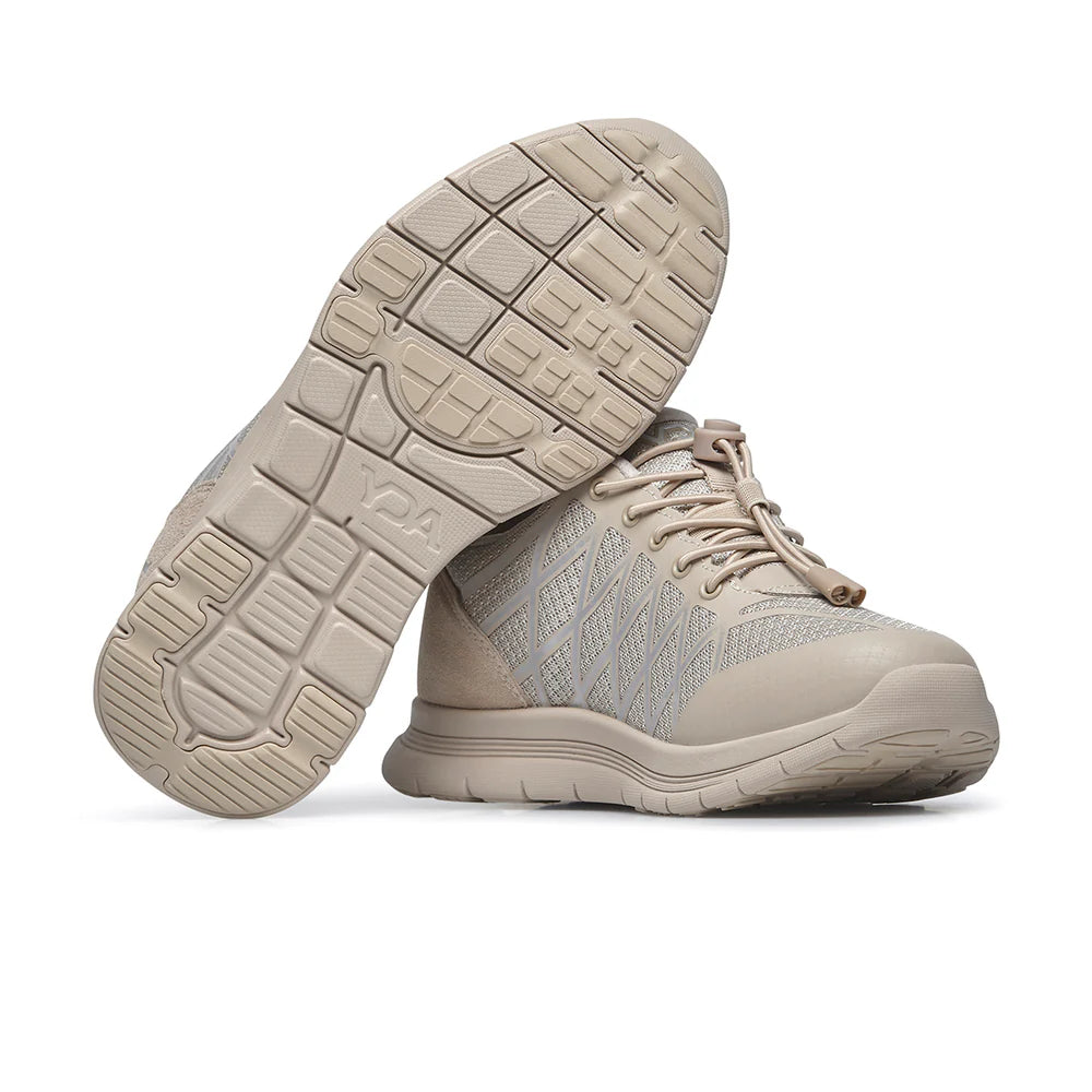 La SCARPA YDA C1Y-YDAW15 VAULT BEIGE è una sneaker ortopedica proattiva, unisex, prodotta da Optima Molliter, che punta al benessere e al comfort grazie al suo sistema biomeccanico. Questo modello è noto per la sua suola propulsiva, l'assenza di cuciture interne e la capacità di migliorare la postura e l'equilibrio durante la camminata.